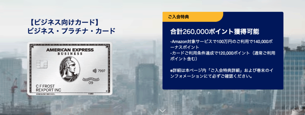 アメックスビジネスゴールドの入会特典は「アメックスビジネスゴールド入会特典を過去も含めて全解説!」をご覧ください。